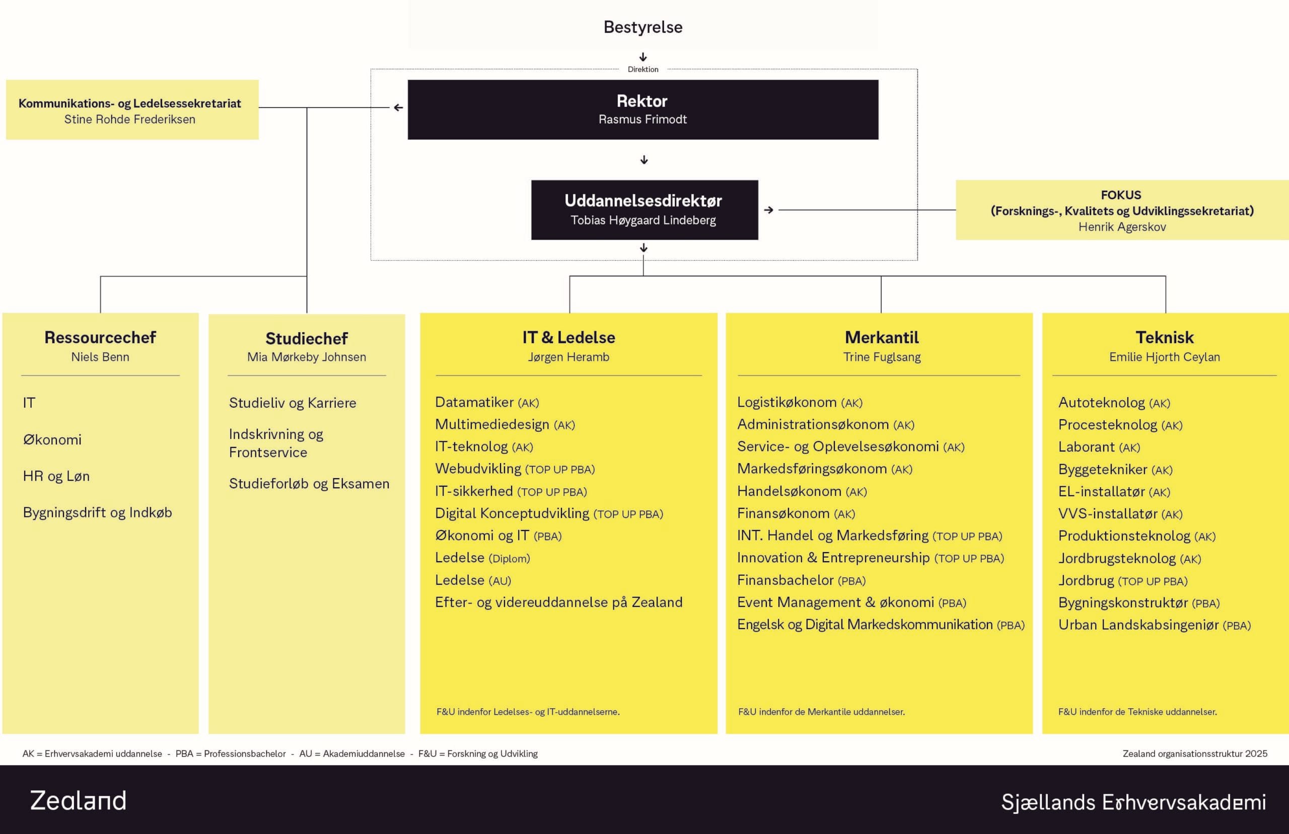 På Zealand udbyder vi videregående uddannelser på fuld tid og deltid. Vi sikrer løbende uddannelsernes aktualitet og kvalitet i samarbejde og dialog med regionens virksomheder – de virksomheder, som vores dimittender er i praktik i og får job i. Vores målsætning er at skabe anvendelig viden, der sikrer de studerendes, virksomhedernes og regionens konkurrenceevne nu og i fremtiden.